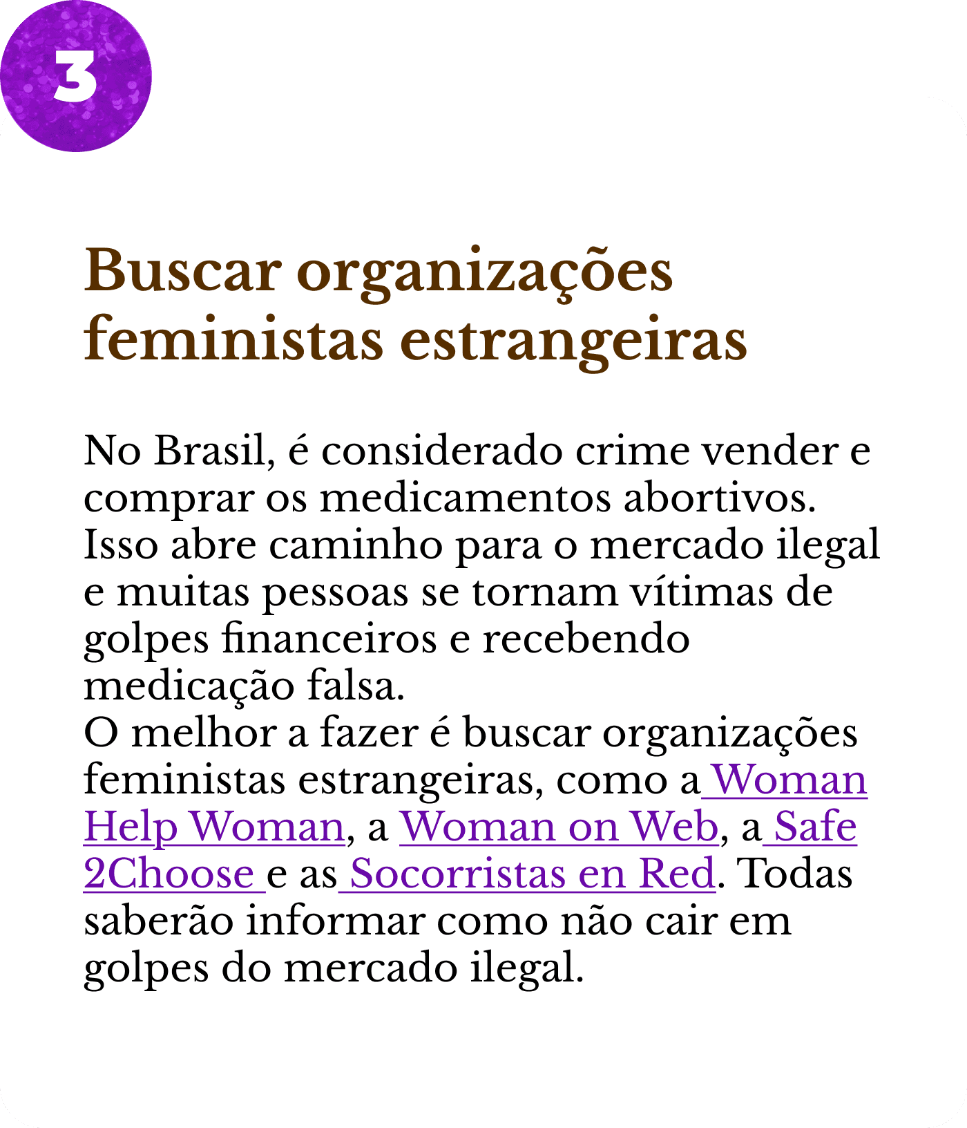Apresentamos para vocês um resumo desta recomendação, em um protocolo baseado tanto nesta nova atualização da OMS, quanto na experiência de coletivas e redes feministas da América Latina que acompanham abortos feitos com medicamentos.