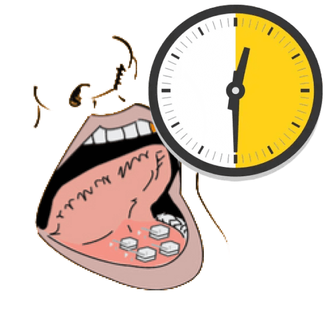 Passadas mais 3 horas, colocar a 3ª e última dose de 4 comprimidos de 200 mcg de Misoprostol debaixo da língua e deixar dissolver por 30 minutos.